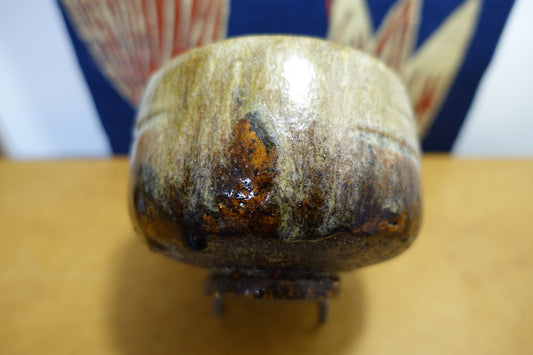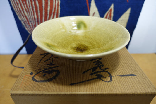 0016 Kibi Style Flat Tea Bowl by Touei (Katsuji) MIZUKAWA at Kibi Kiln with an original box