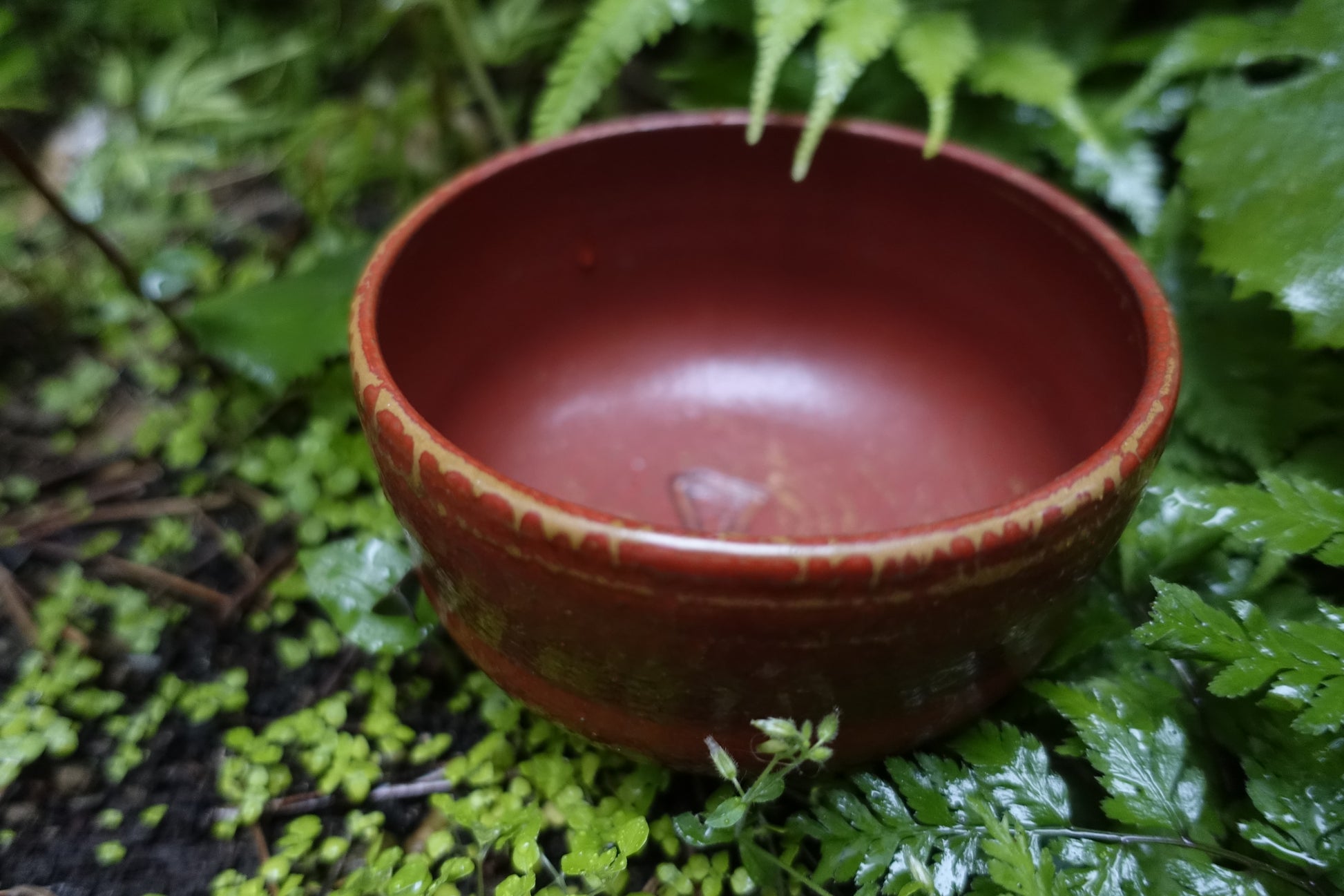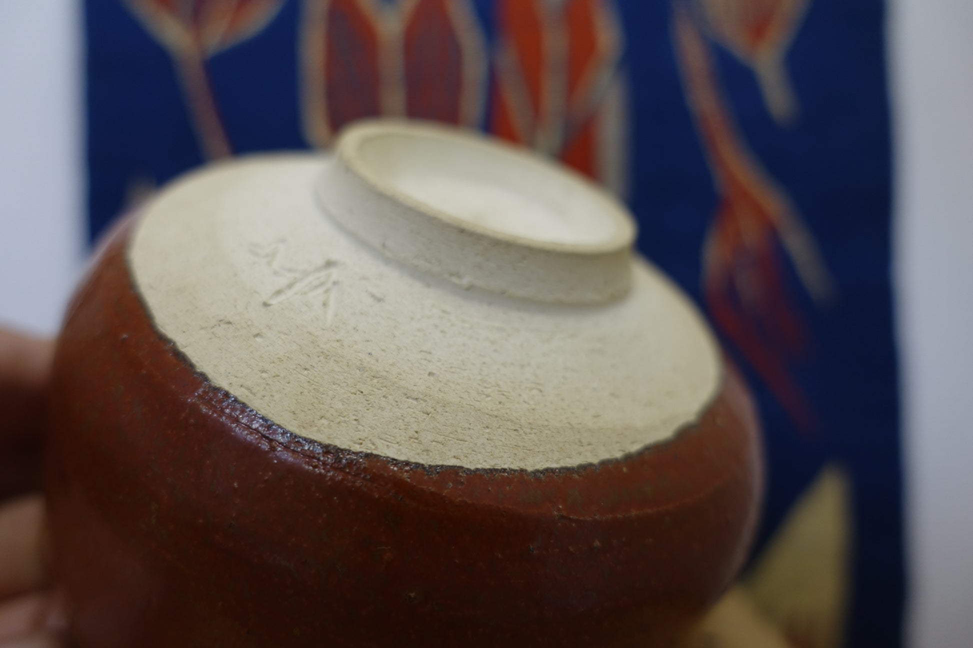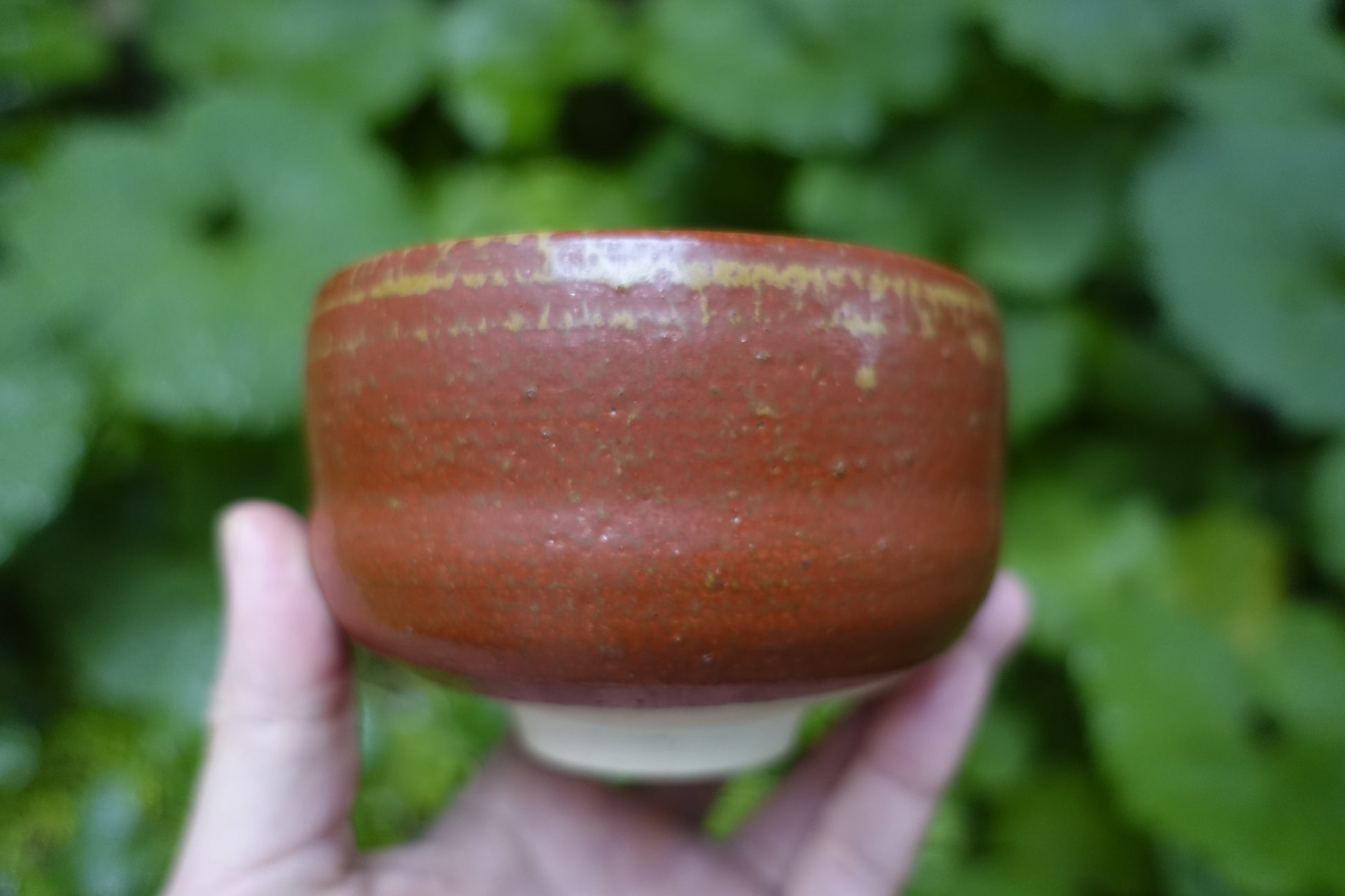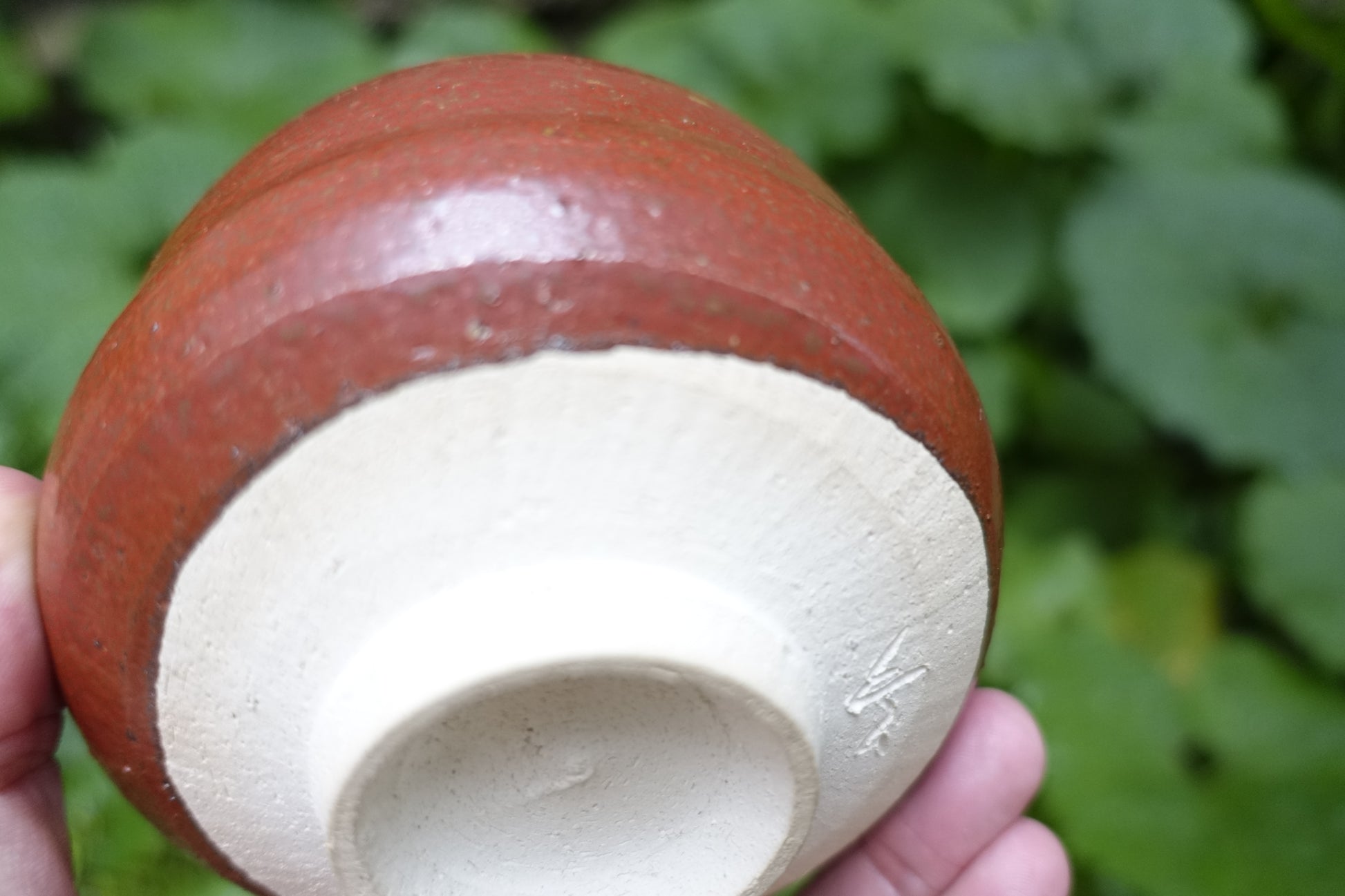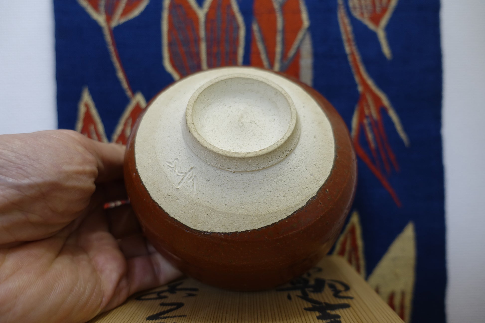 赤釉茶碗 末広窯 中島翁介作 -共箱-