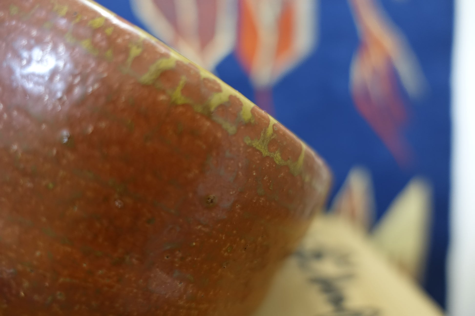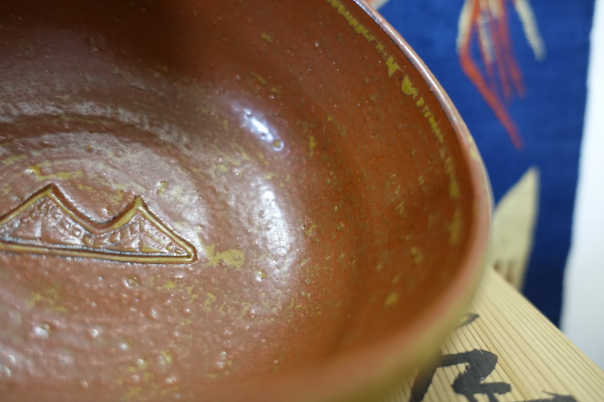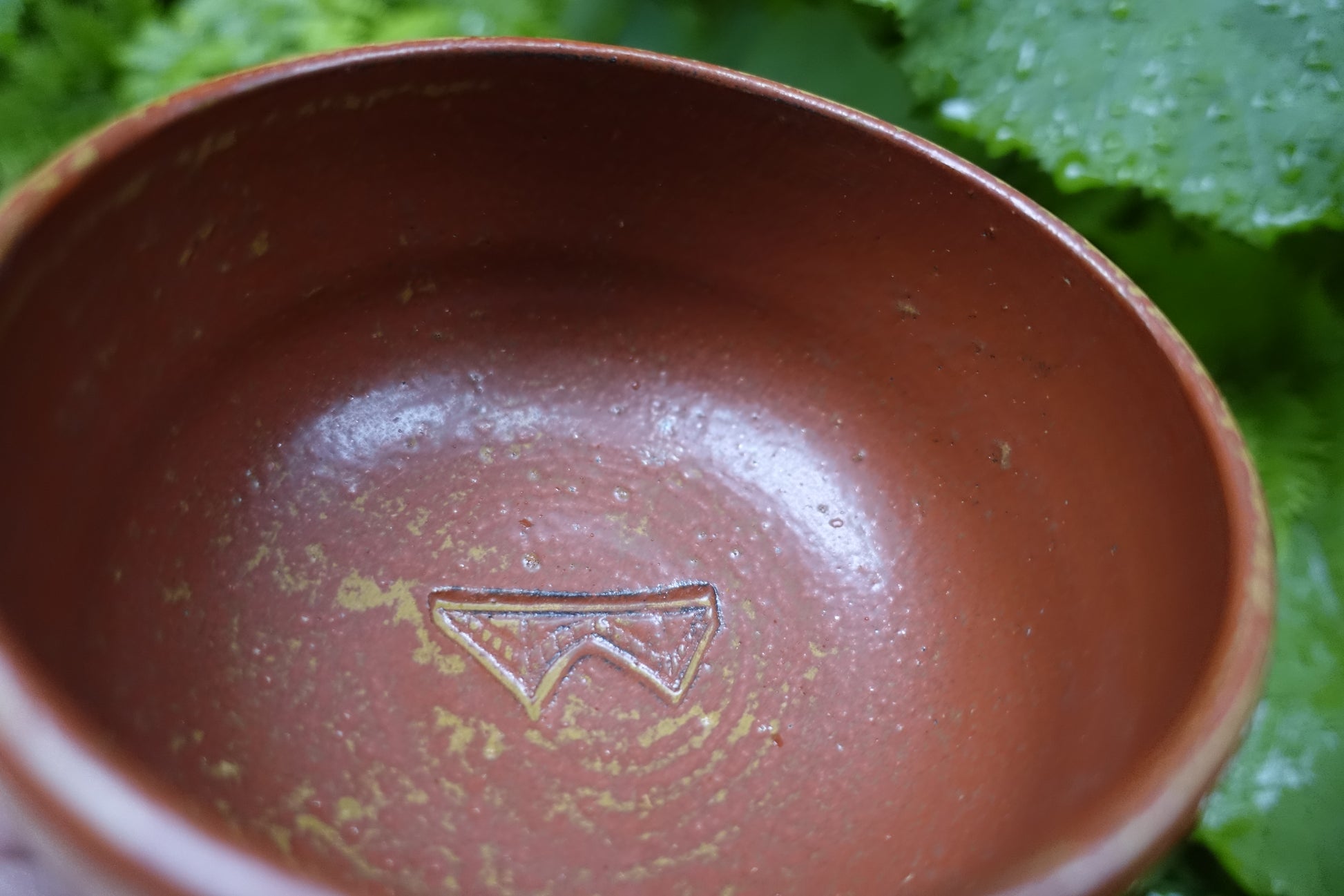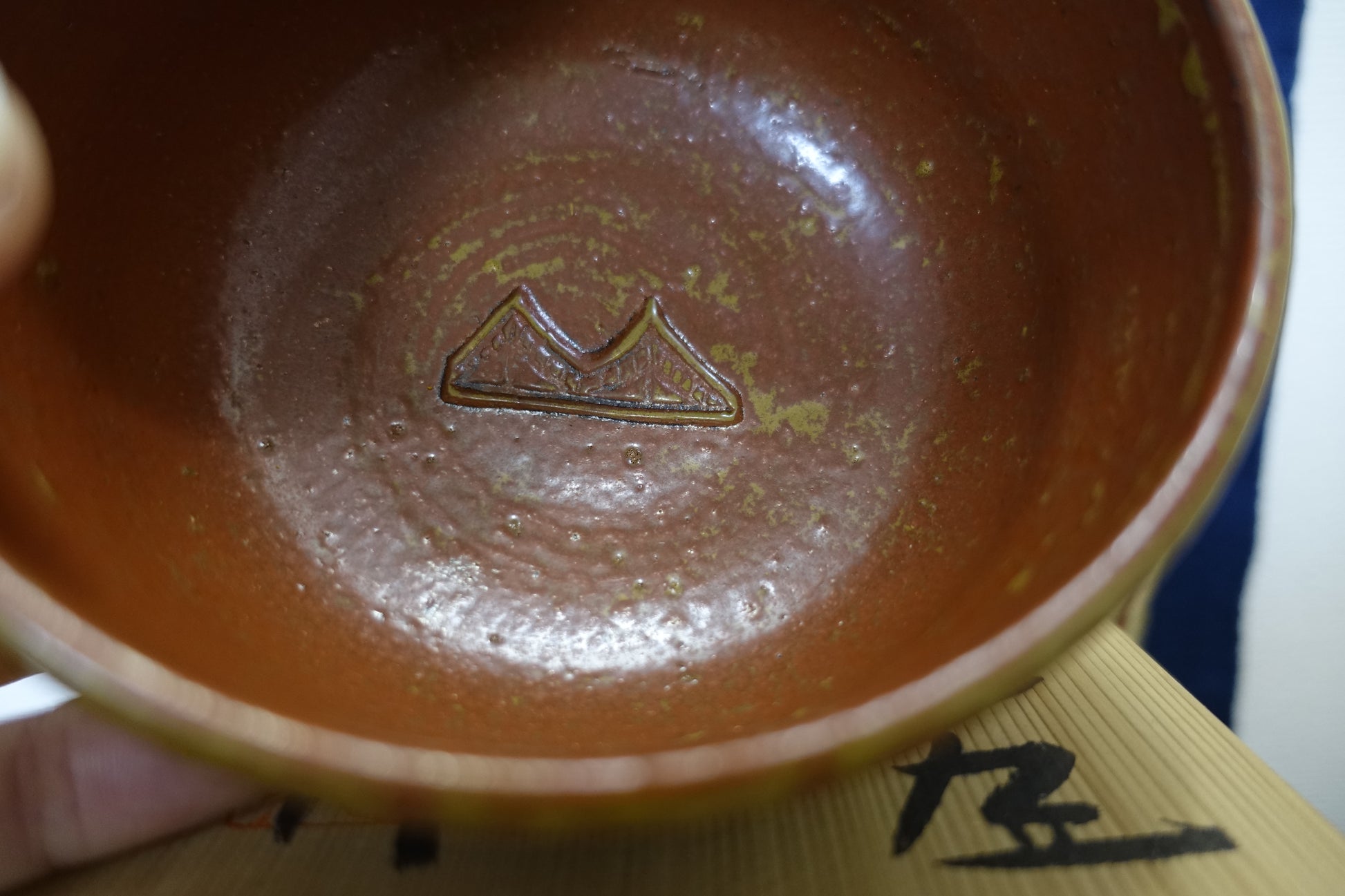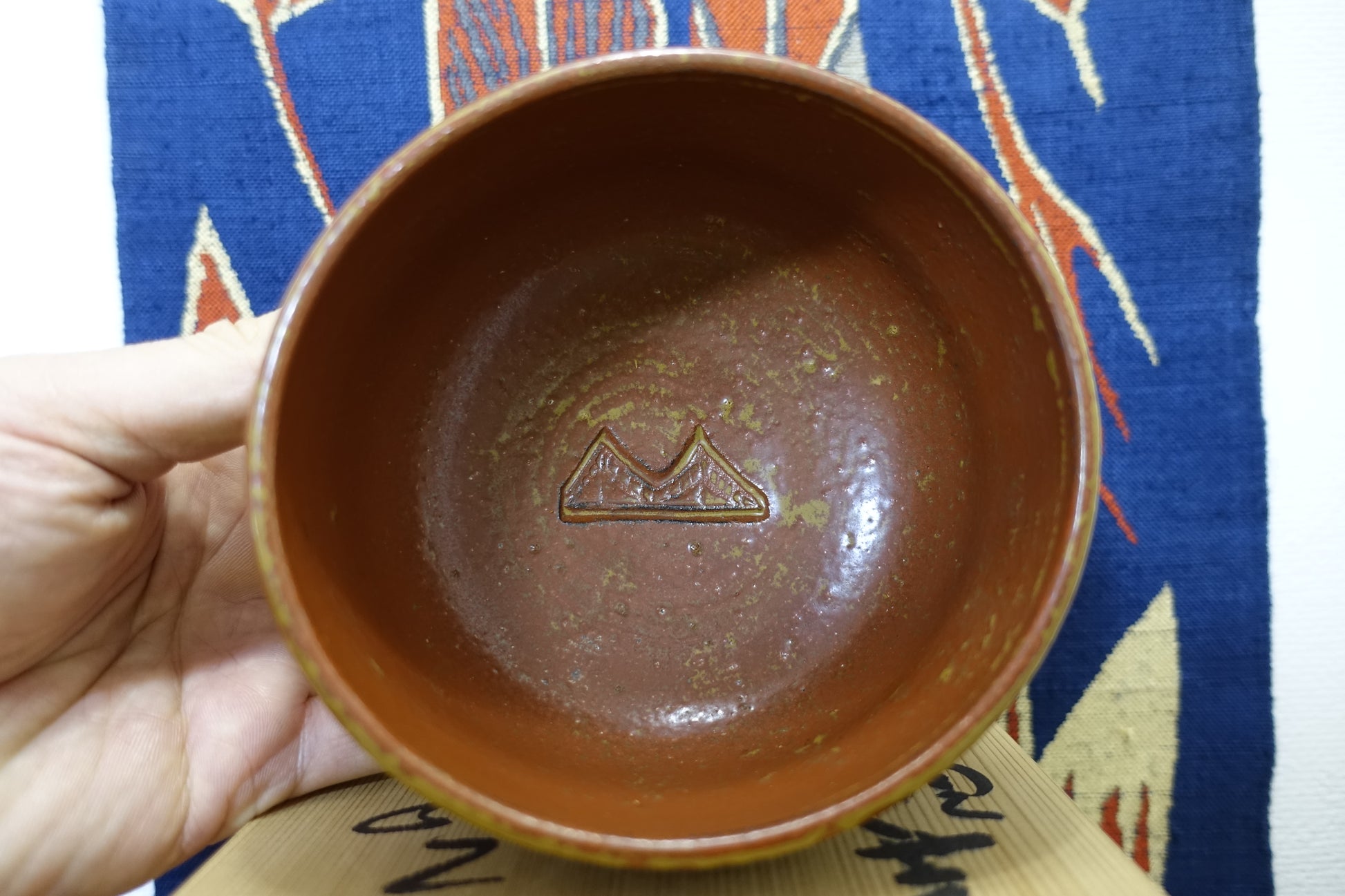 赤釉茶碗 末広窯 中島翁介作 -共箱-
