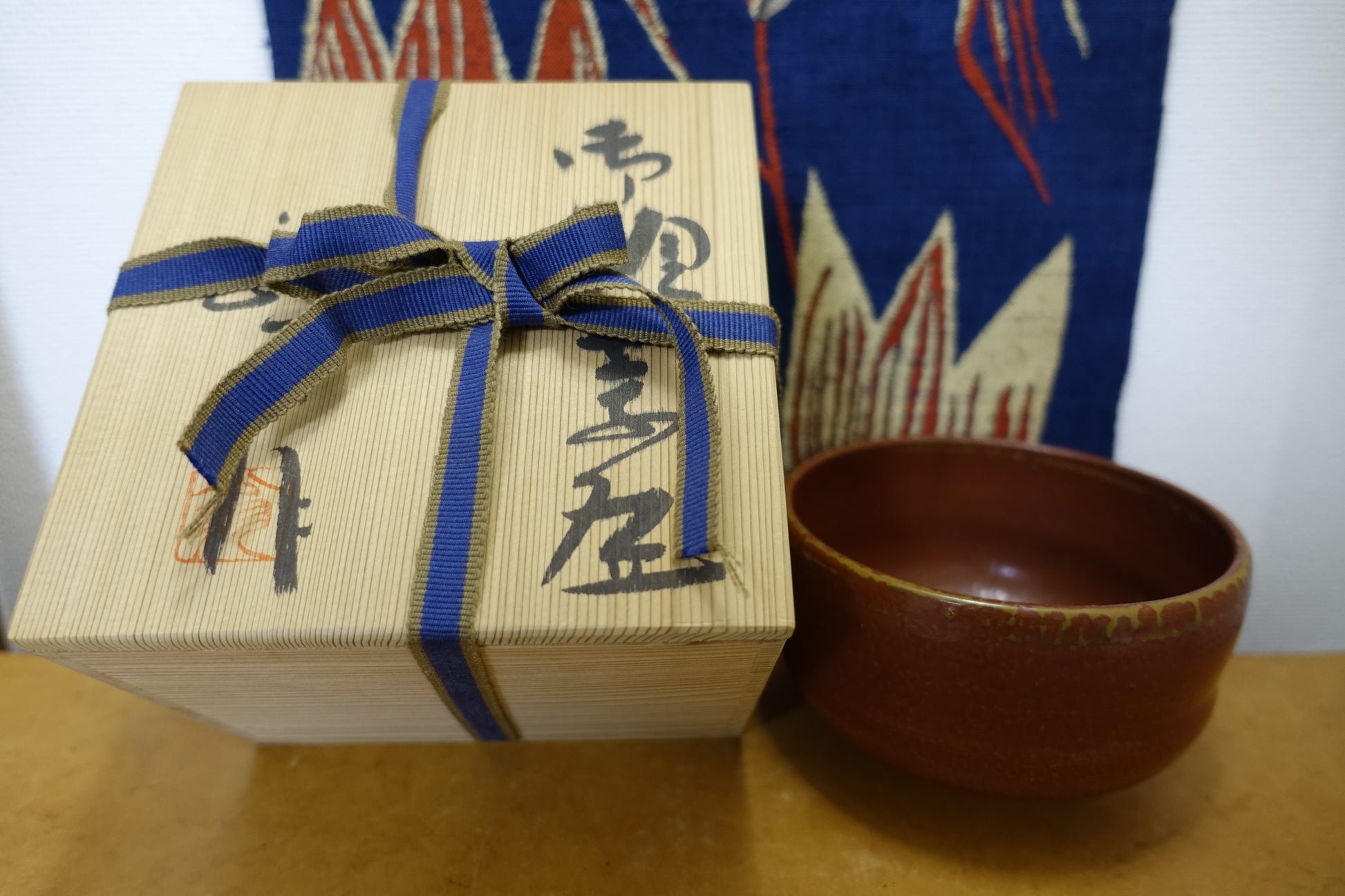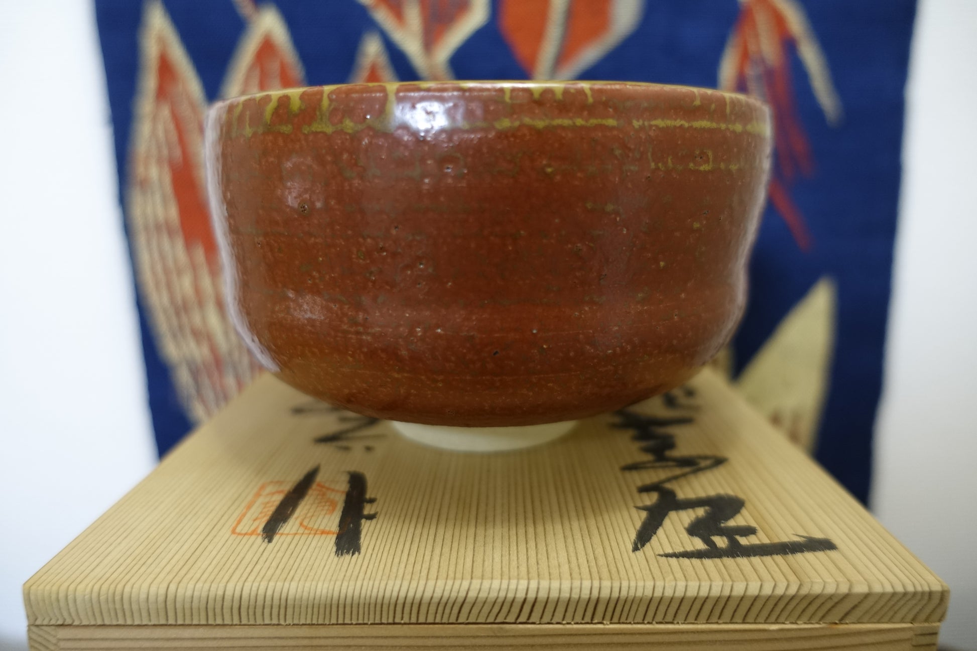 Red Glazed Tea Bowl by Ousuke Nakashima at Suehiro Kiln with an original box