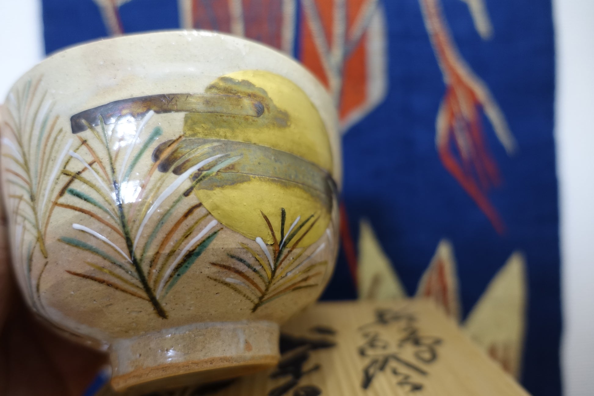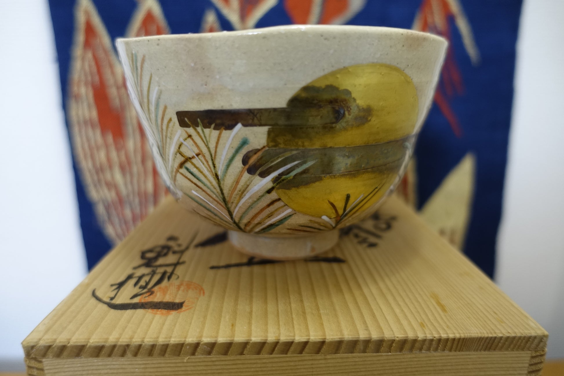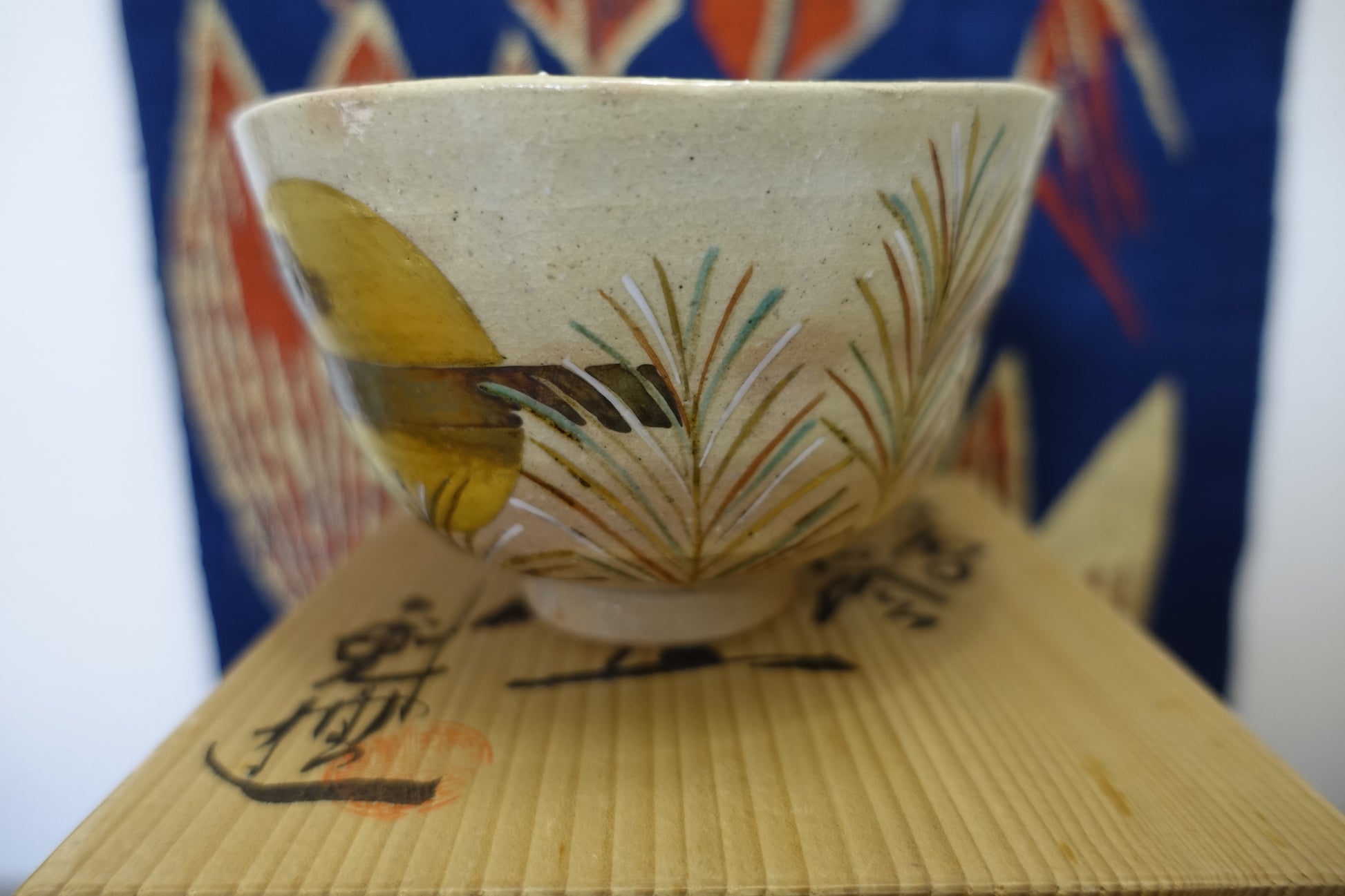 Tea Bowl -Kutani- made by Kunihiko Nitta at Tokuyama Kiln with box (unrelated)