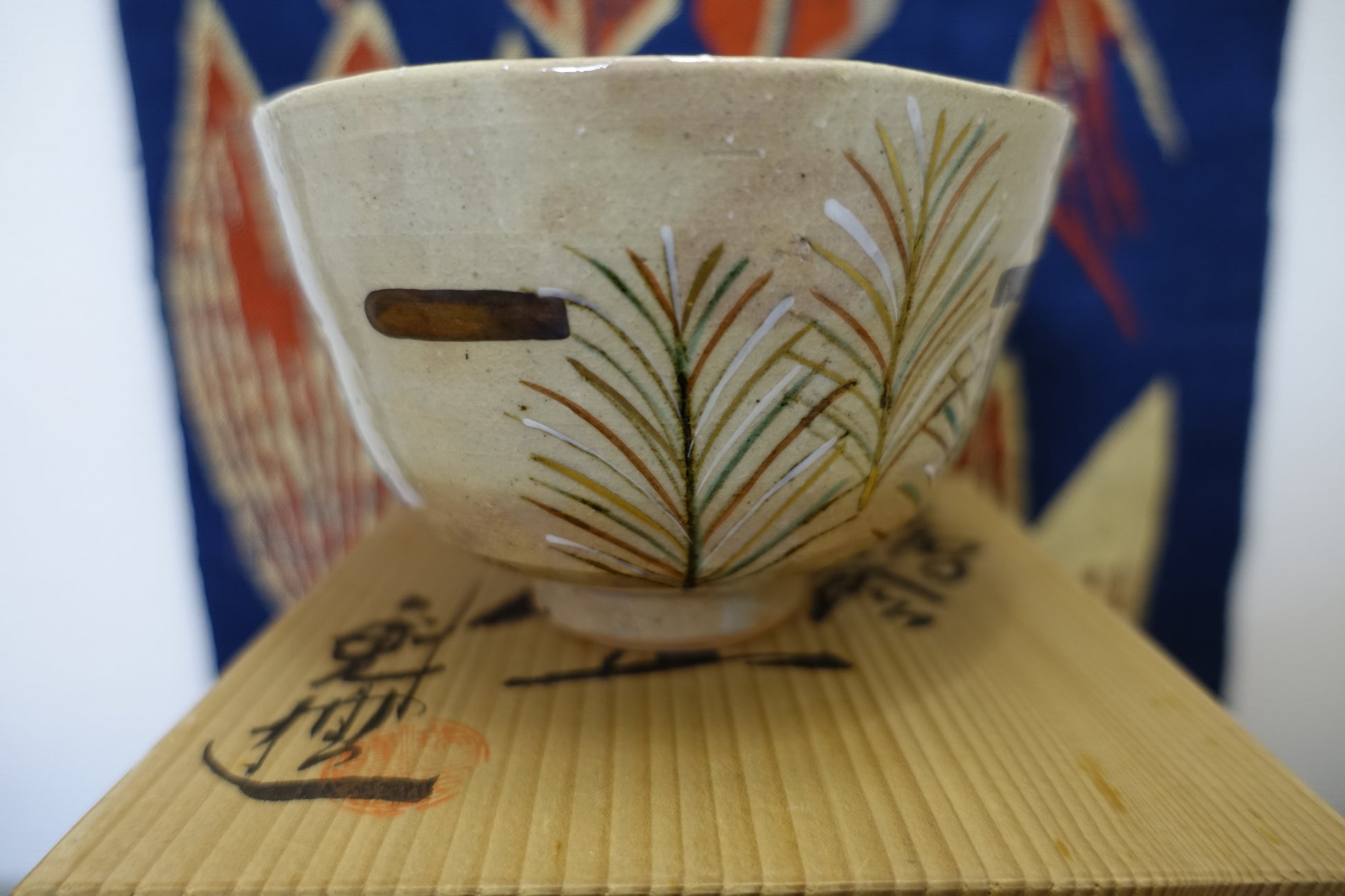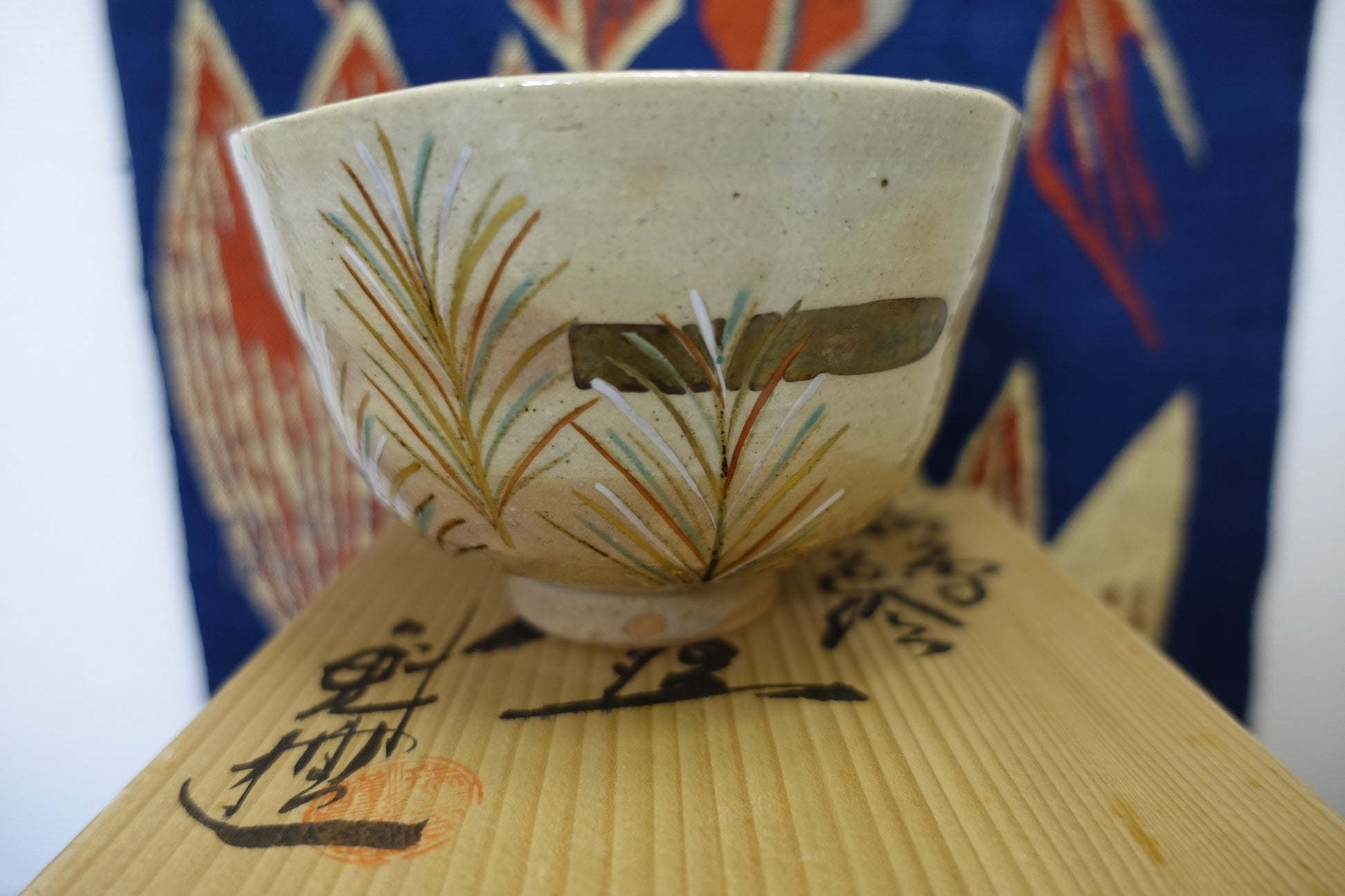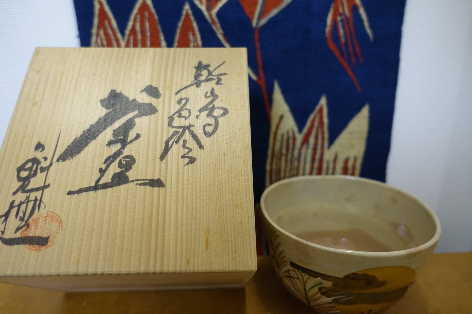 Tea Bowl -Kutani- made by Kunihiko Nitta at Tokuyama Kiln with box (unrelated)
