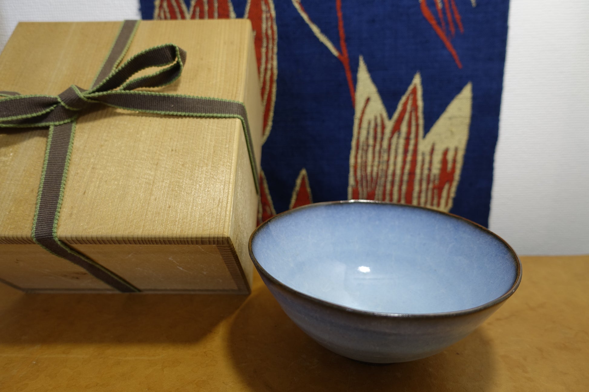 0006 Glazed Tea Bowl "Blue Sky" with a box