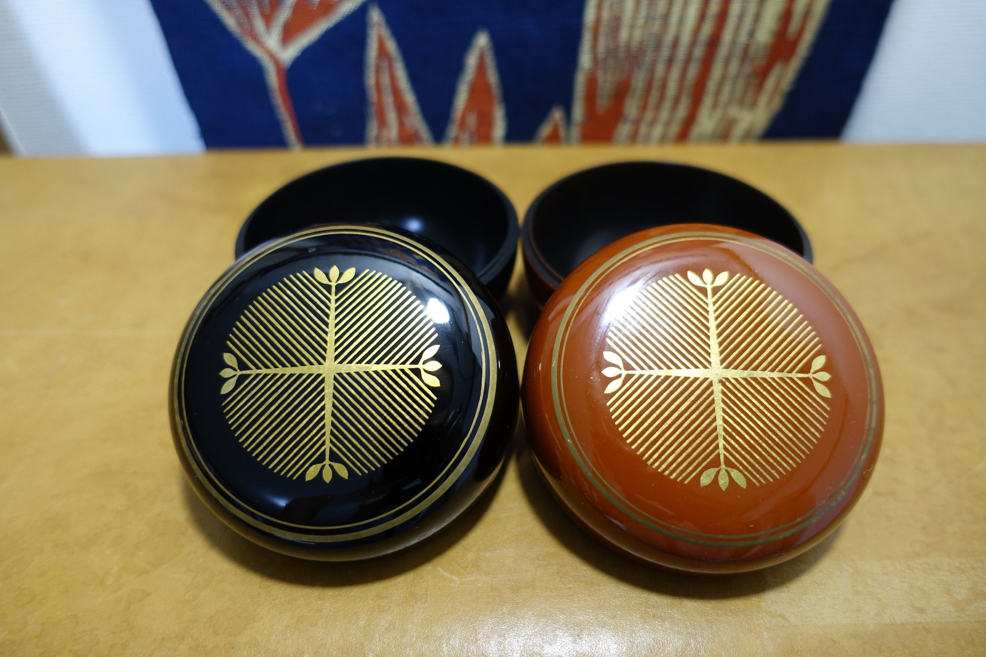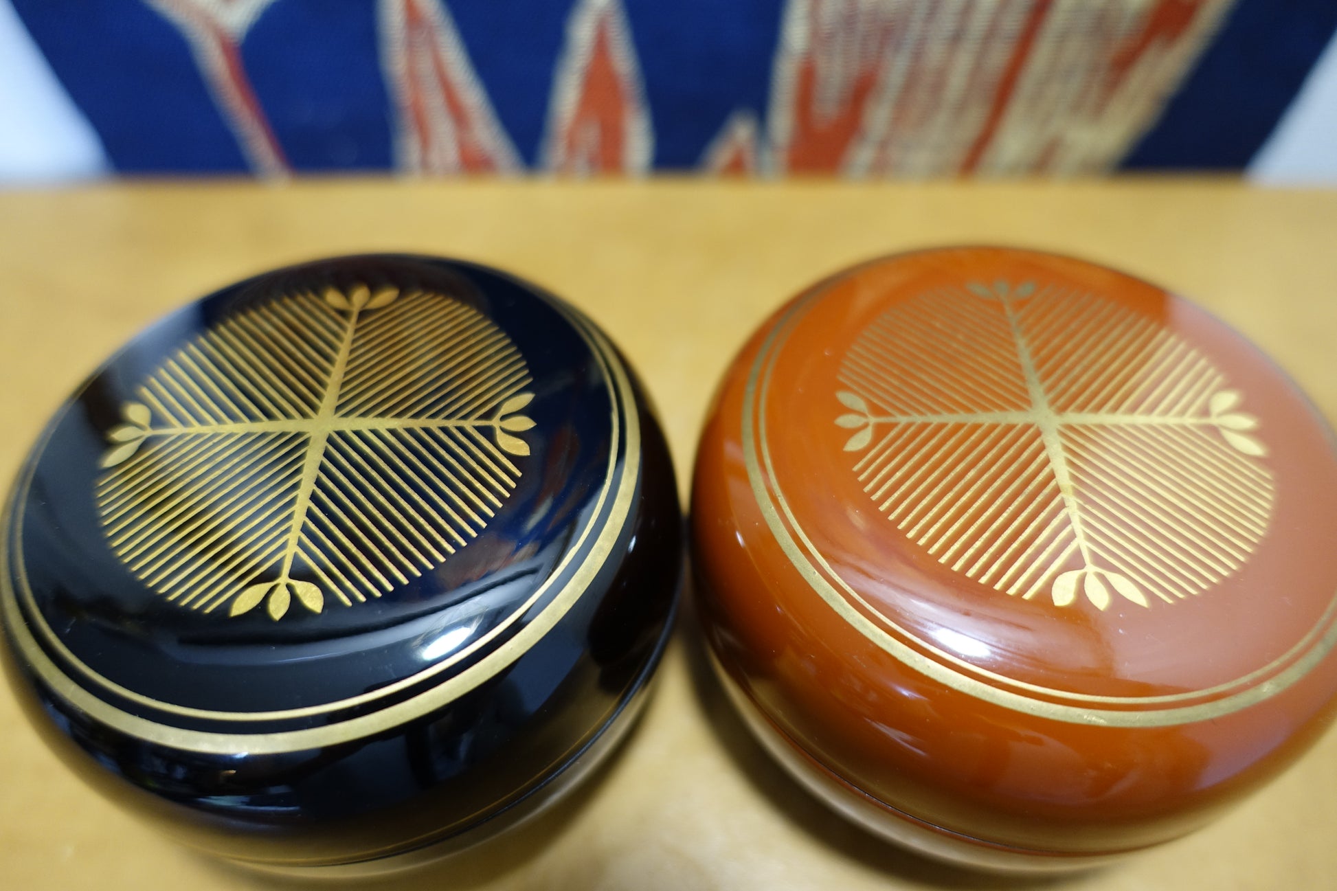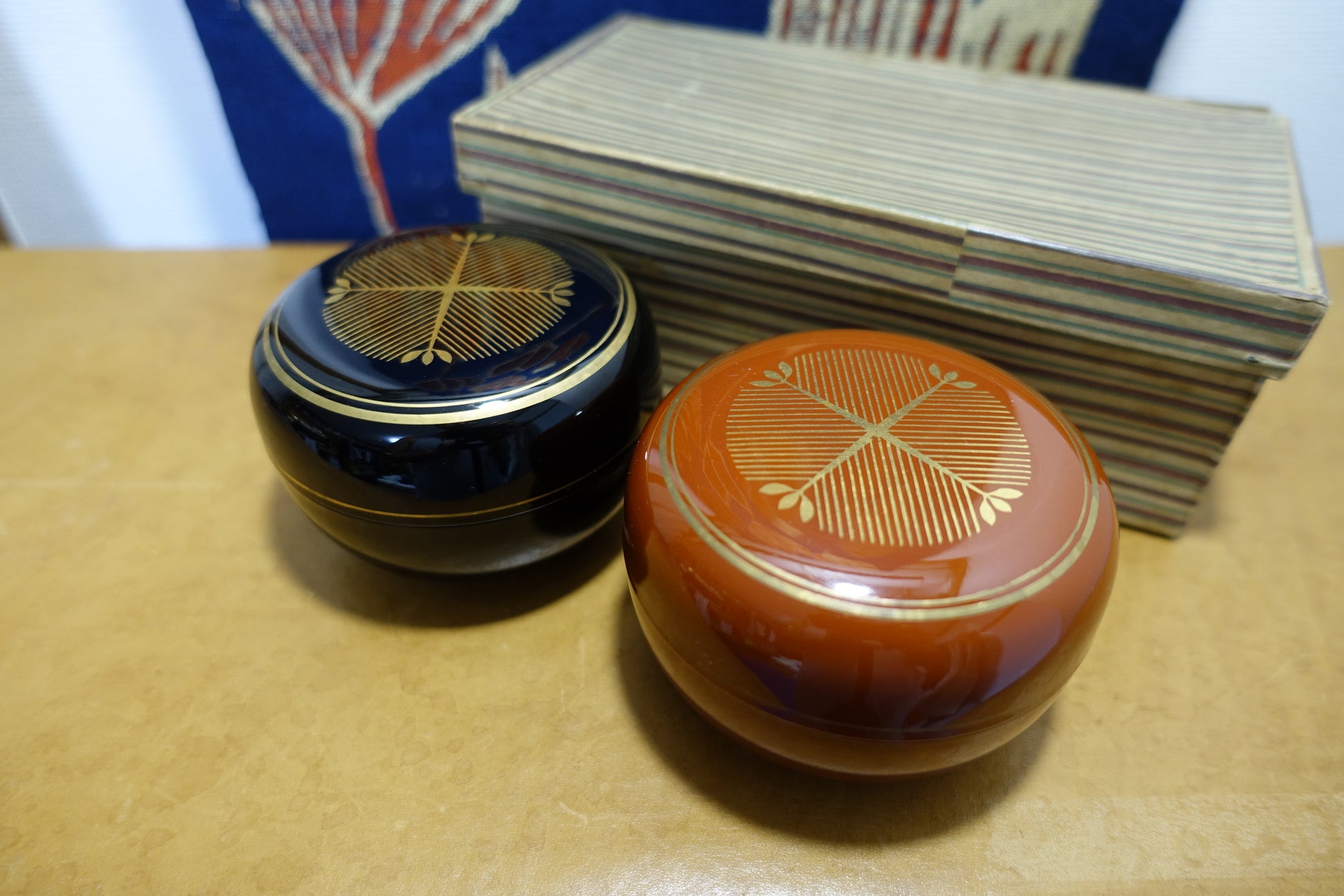 朱黒色漆器 金彩 共箱