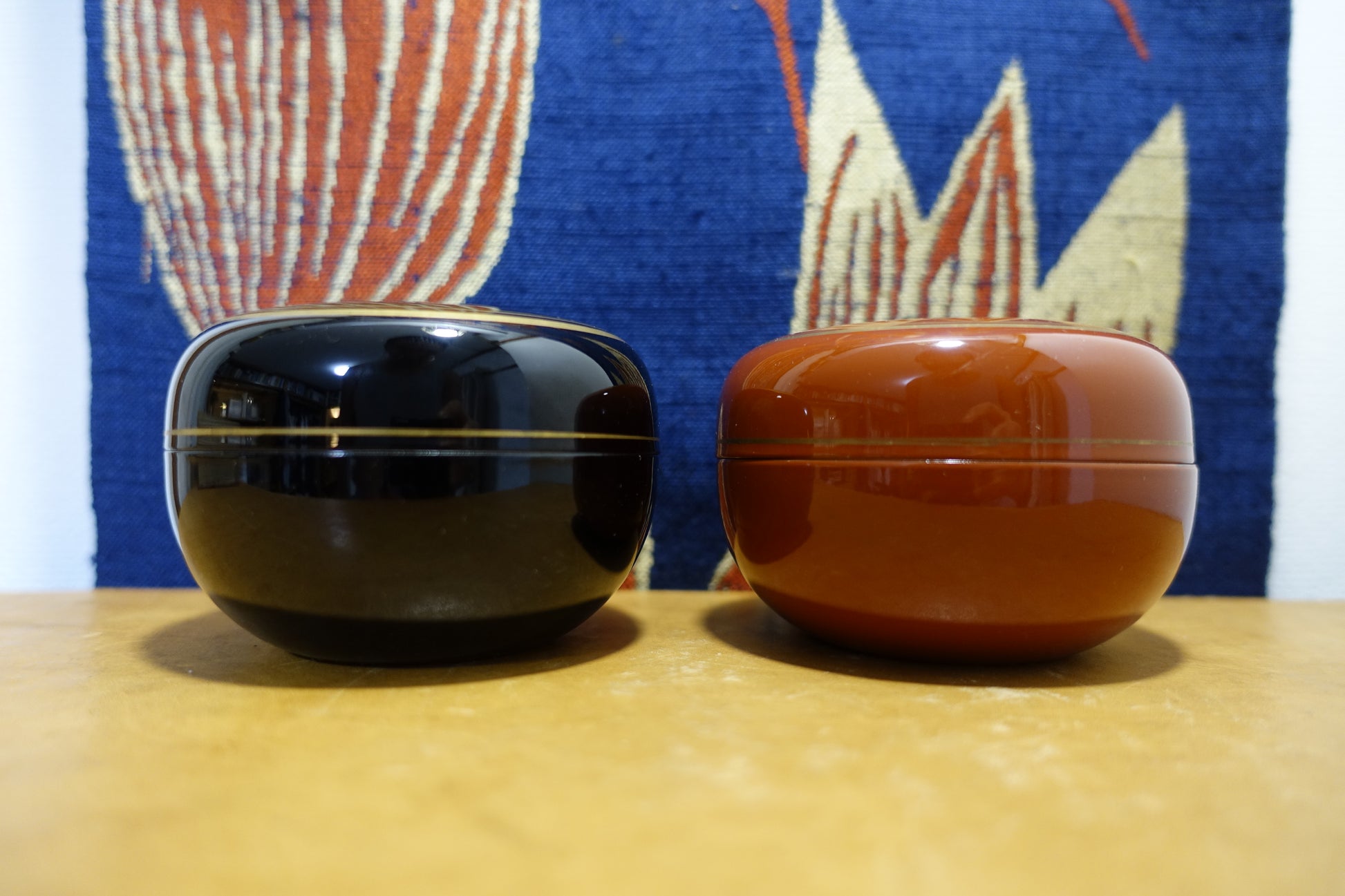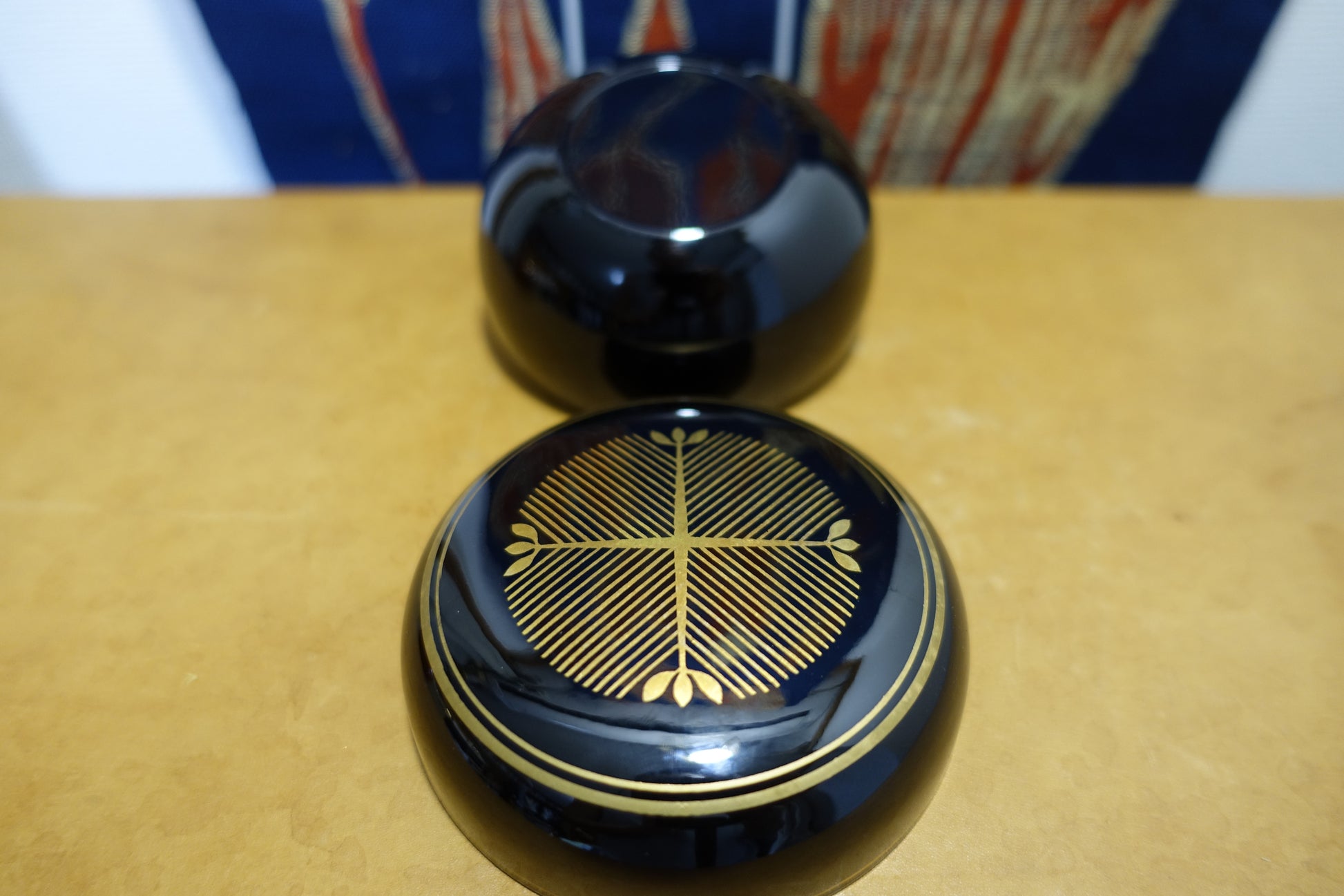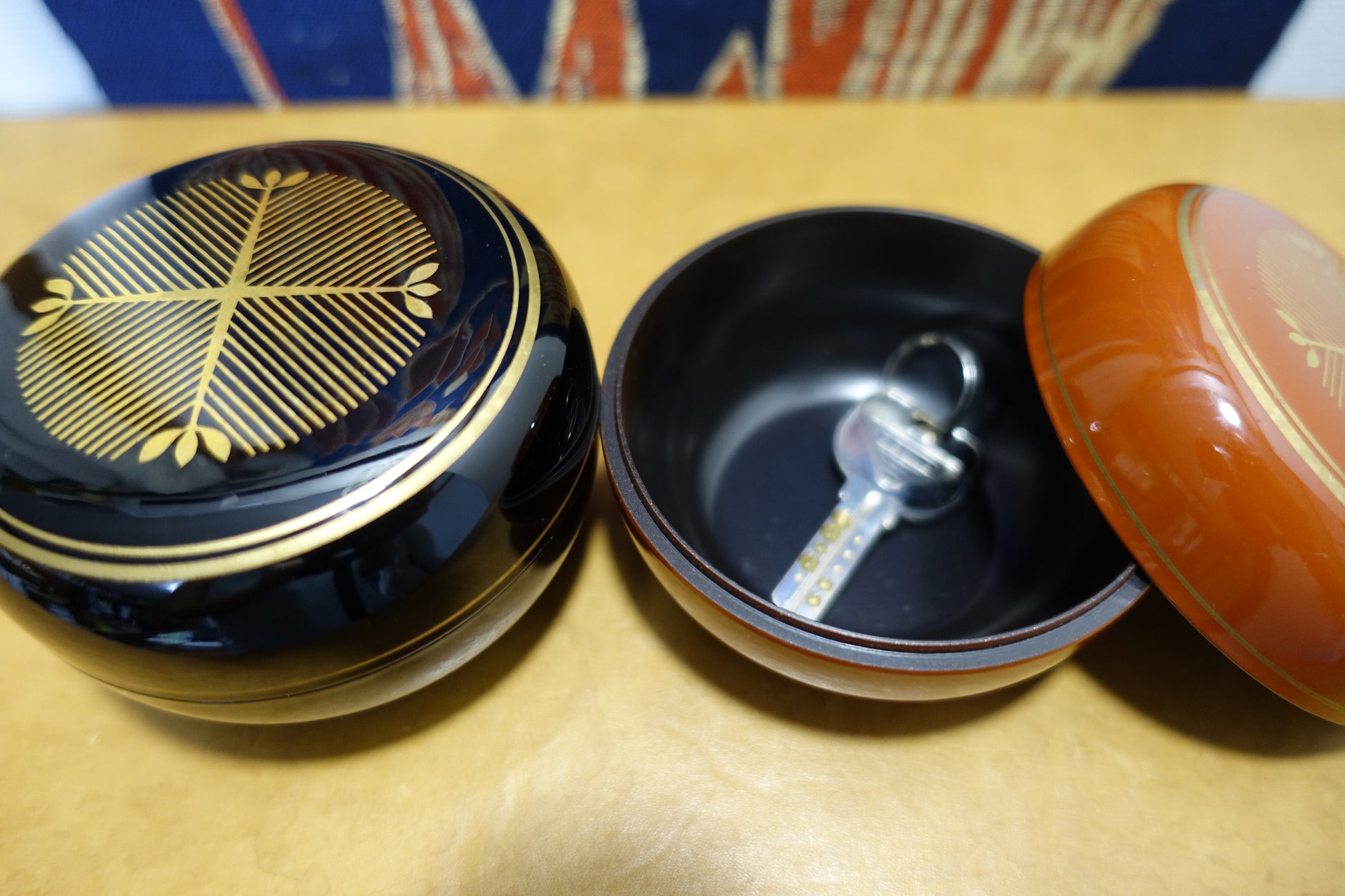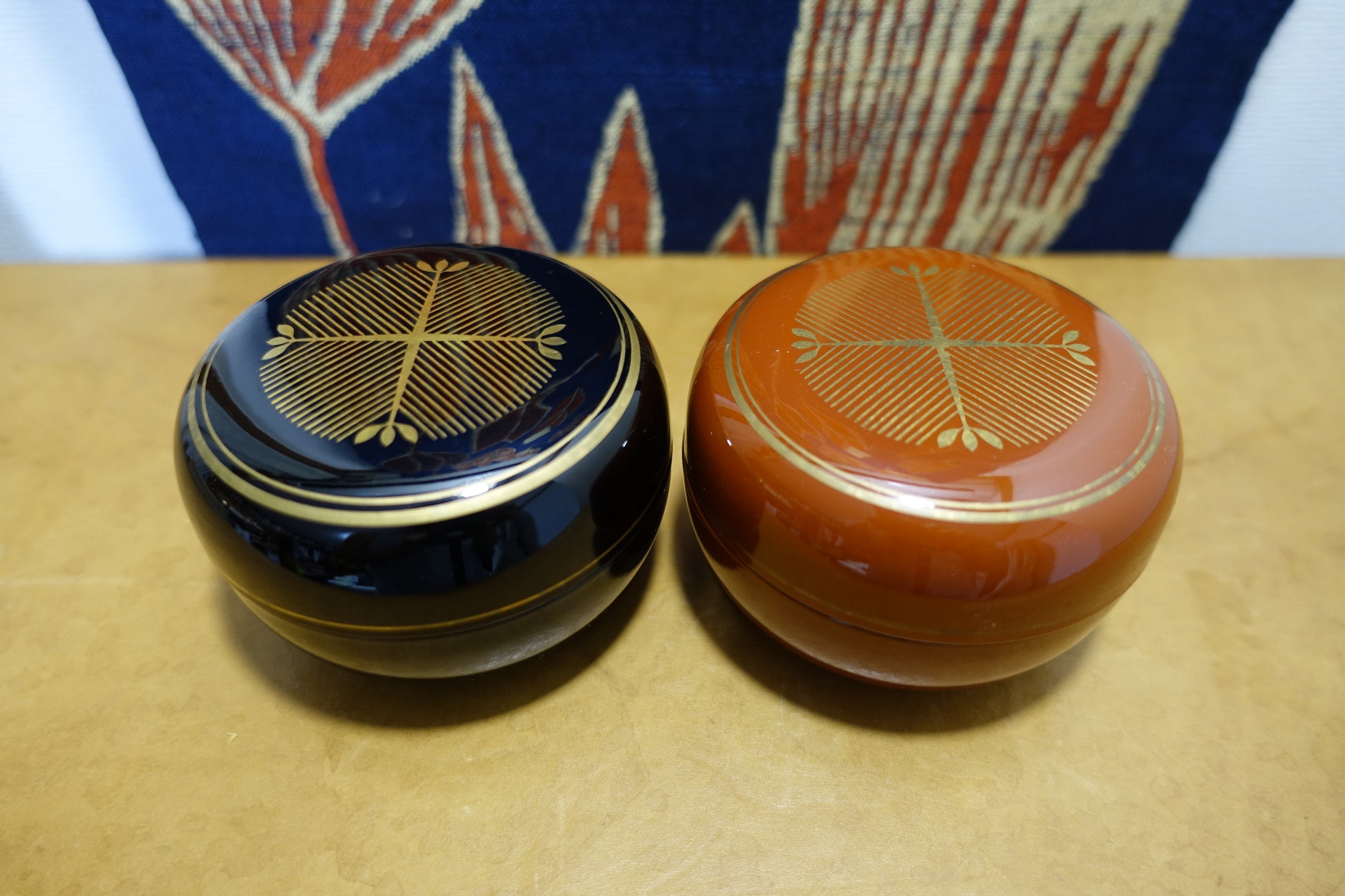 朱黒色漆器 金彩 共箱