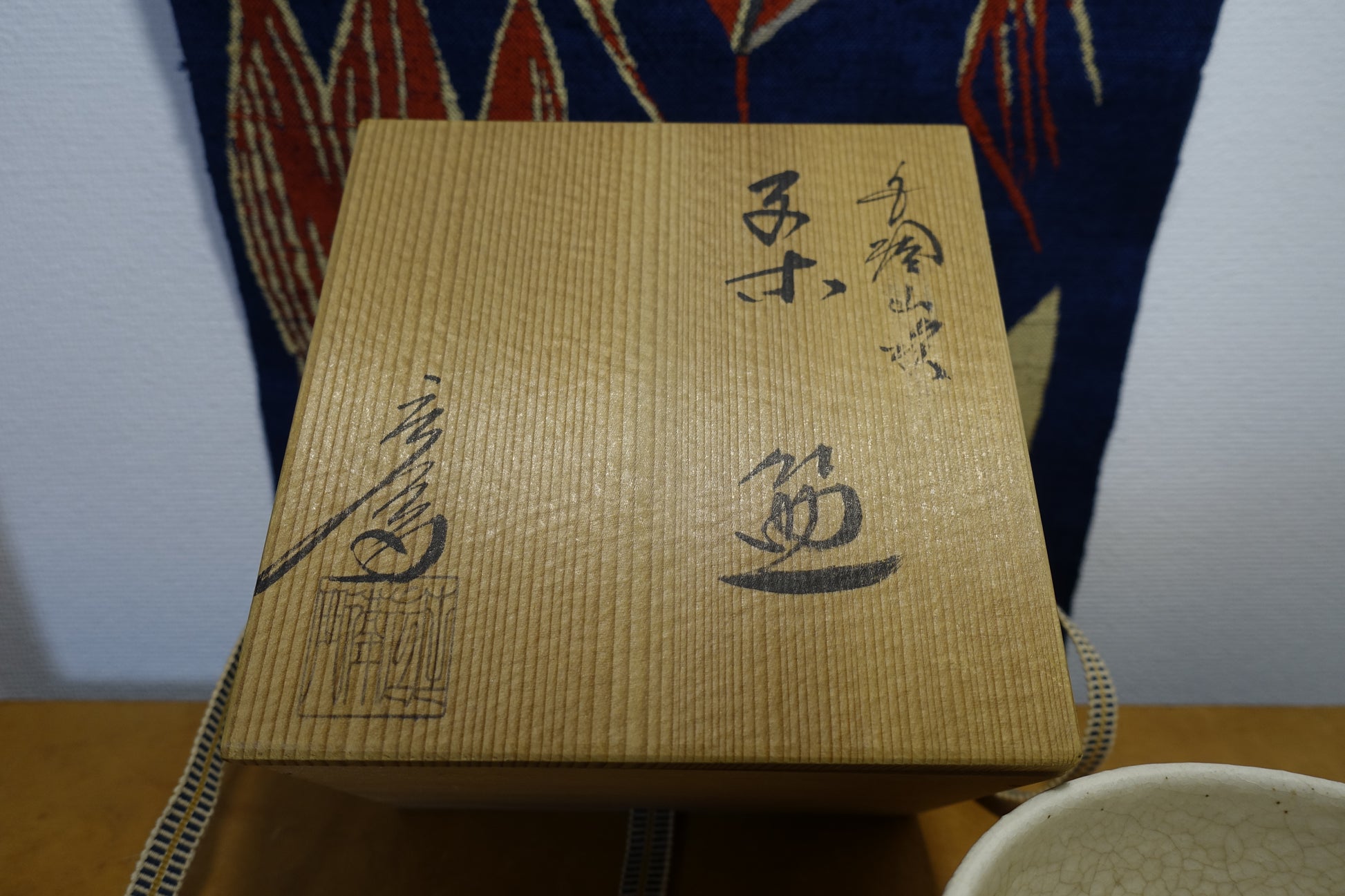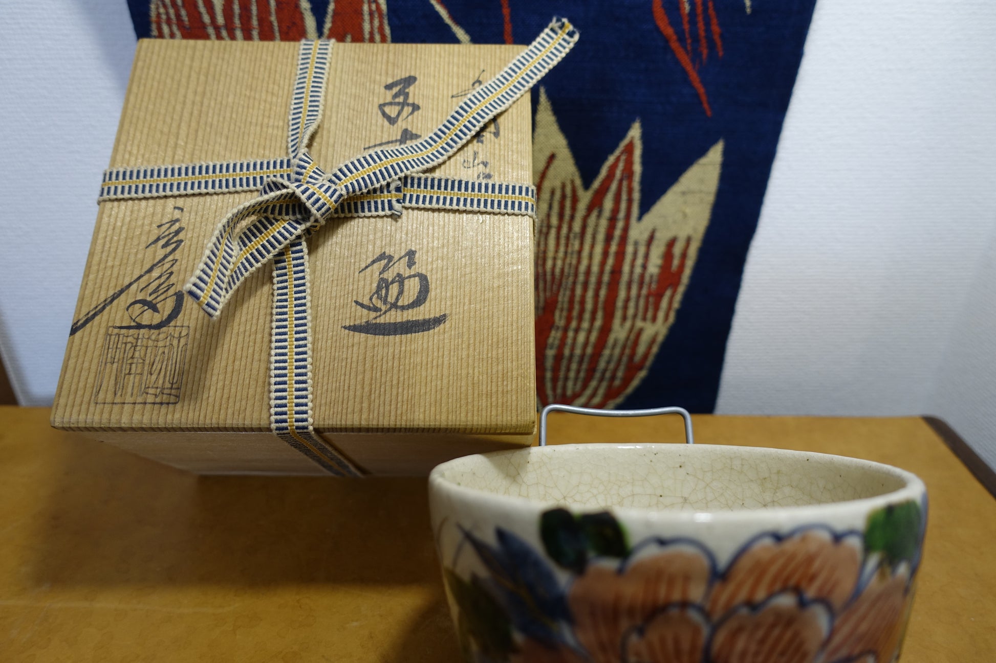 Colored Overgrazed tea bowl - made by Shozaemon at Oshiko-ji kiln with an original box